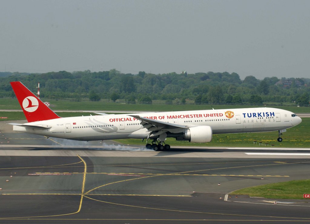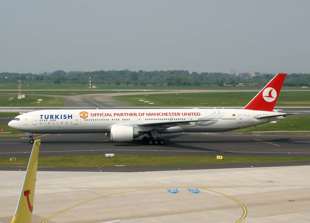 Turkish Airlines, TC-JJC, Boeing 777-300 ER "Karadeniz" (Manchester United-Sticker), 29.04.2011, DUS-EDDL, Düsseldorf, Germany