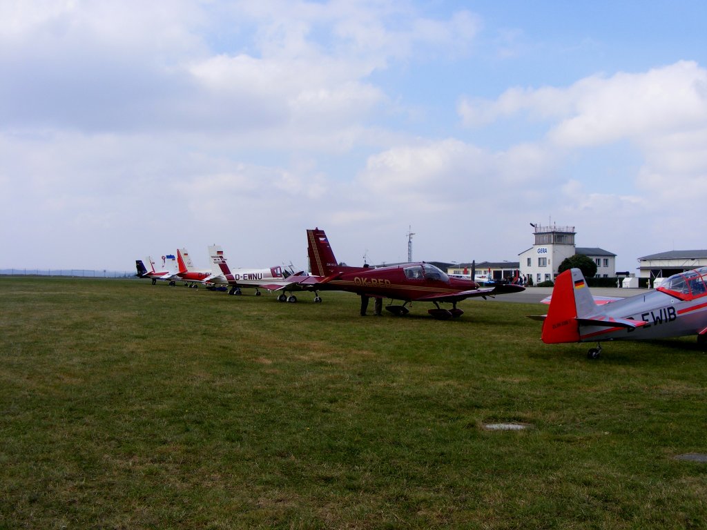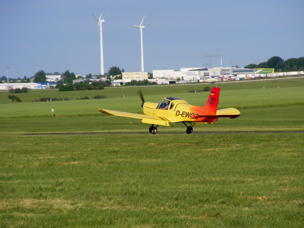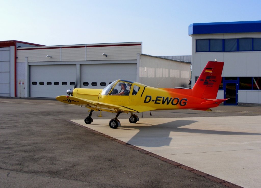 Zlin 42 D-EWOG (ex.DDR-WOG), von Gina Tympel, in neuer Lackierung auf dem Vorfeld in Gera (EDAJ)am 2.6.2011