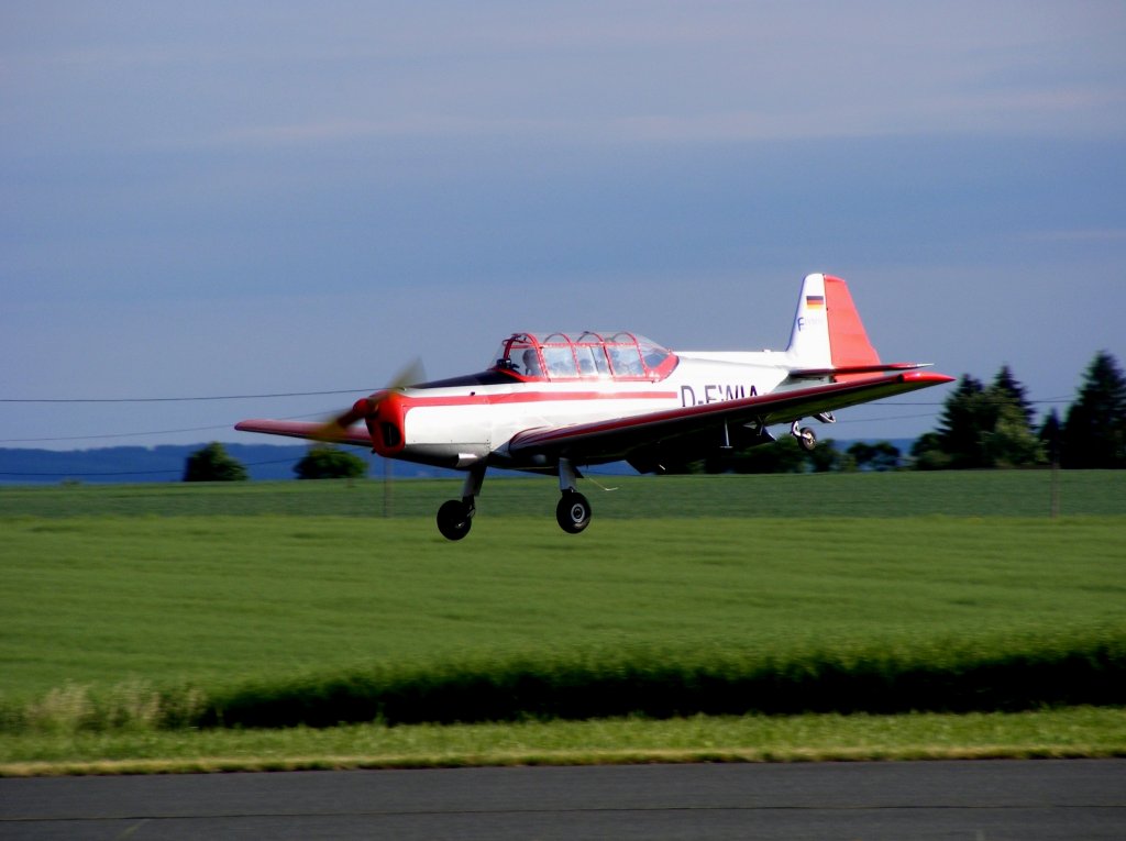 Zlin 226 D-EWIB bei der Landung in Gera (EDAJ) an Himmelfahrt 2011.