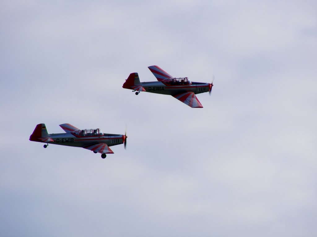 Zlin 226 D-EWIA und D-EWIB im Paar über dem Flugplatz Gera (EDAJ)am 2.6.2011