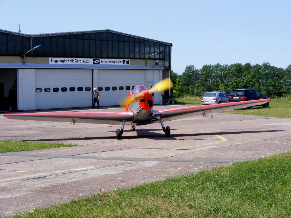 Zlin 226 D-EWIA vor der Technikhalle auf dem Flugplatz Gera (EDAJ)an Himmelfahrt 2011
