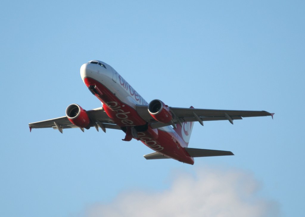 Air Berlin (Belair) A 320-214 HB-IOU beim Start in Berlin-Tegel am 12.02.2011
