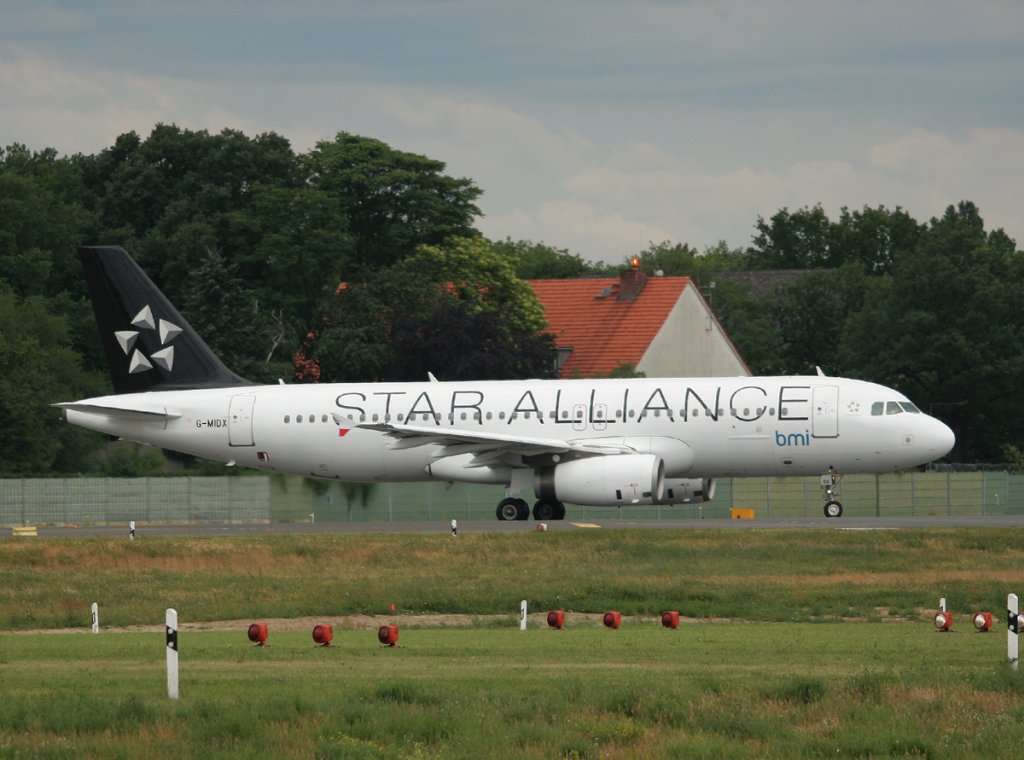 BMI A 320-232 G-MIDX kurz vor dem Start in Berlin-Tegel am 18.06.2011