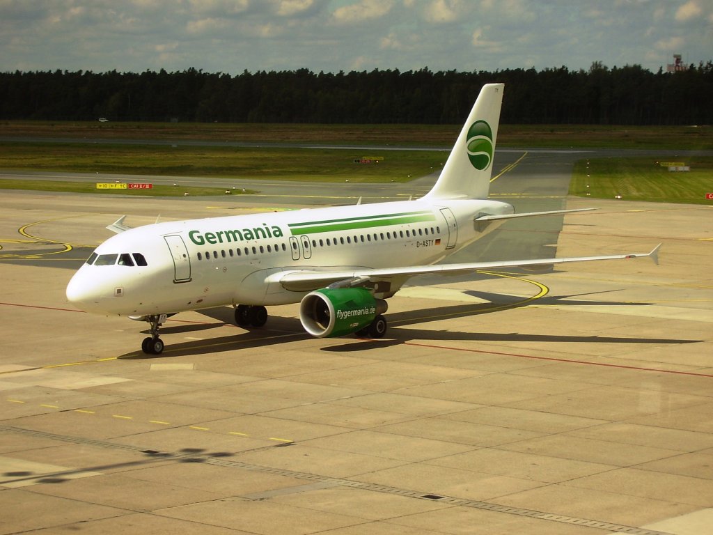 Germania A 319-112 D-ASTY auf dem Weg zum Start in Berlin-Tegel am 25.06.2011