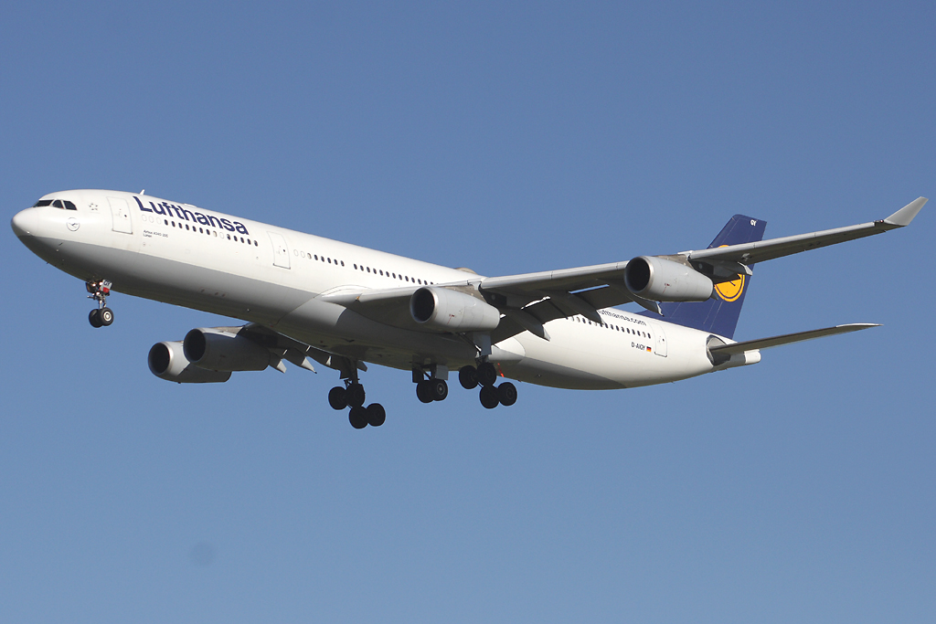 Lufthansa Airbus A340-600 D-AIHI am Frankfurter Flughafen am 06.08.2011