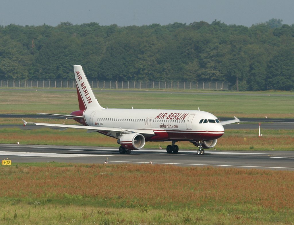 Air Berlin(Belair) A 320-214 HB-IOS beim Start in Berlin-Tegel am 02.08.2011