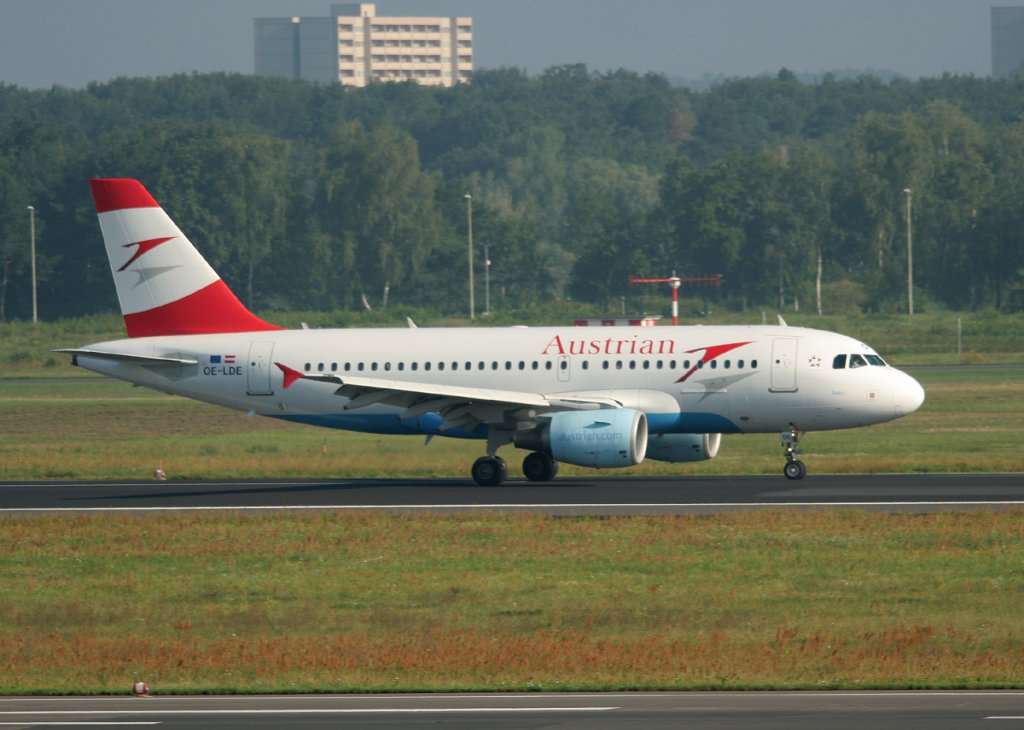 Austrian A 319-112 OE-LDE nach der Landung in Berlin-Tegel am 02.08.2011