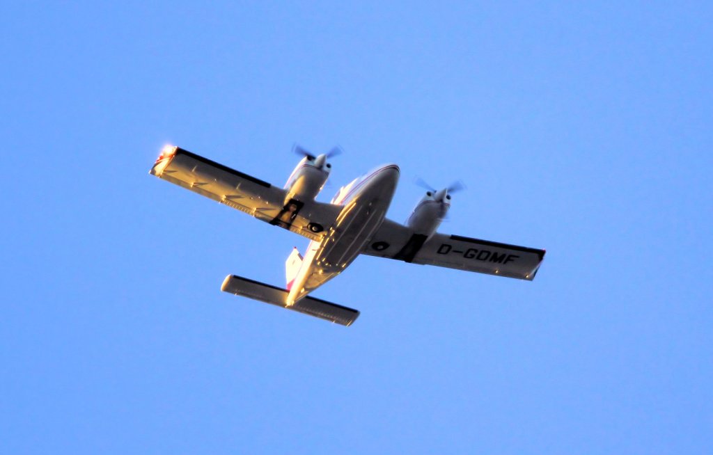 Eine Piper PA-34-220T Seneca III beim Überflug von Murrhardt gegen Abend am 30.9.2011.