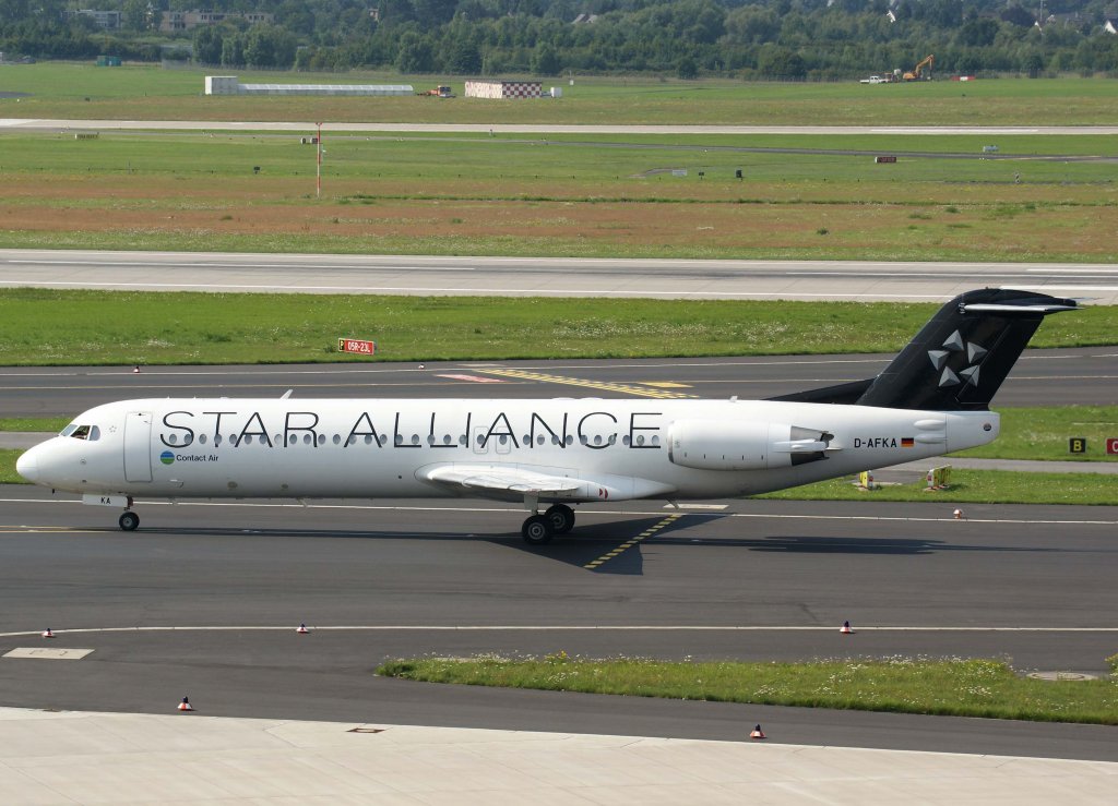 Lufthansa Regional (Contact Air), D-AFKA, Fokker 100 (StarAlliance-Lackierung), 28.07.2011, DUS-EDDL, Düsseldorf, Gemany