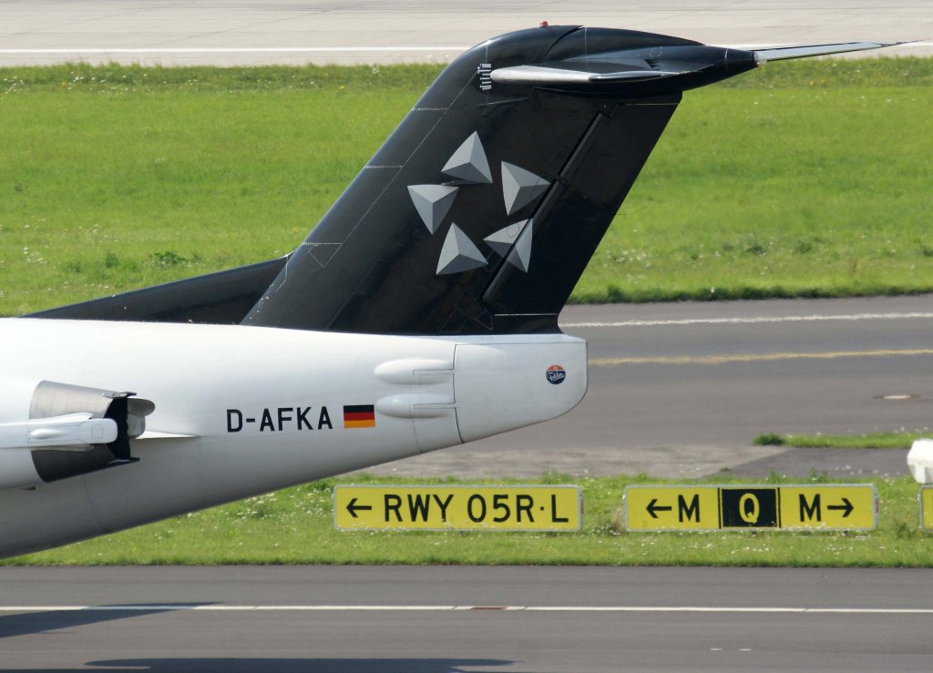 Lufthansa Regional (Contact Air), D-AFKA, Fokker 100 (Seitenleitwerk/Tail ~ StarAlliance-Lackierung), 28.07.2011, DUS-EDDL, Düsseldorf, Gemany