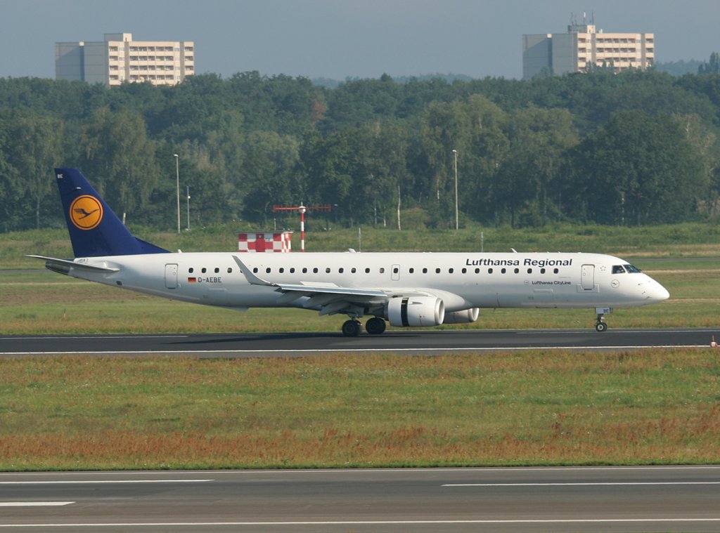 Lufthansa Regional(CityLine) Embraer ERJ-195LR D-AEBE nach der Landung in Berlin-Tegel am 02.08.2011