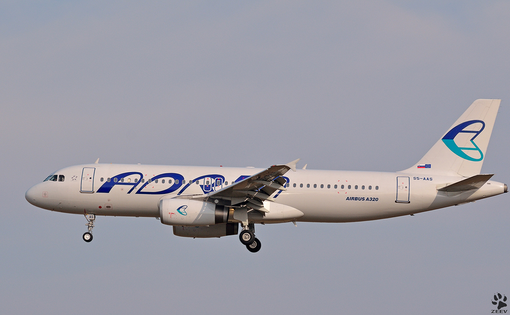 ADRIA S5-AAS Airbus A320 bei Trainingsflug an Maribor Flughafen MBX. / 31.01.2012