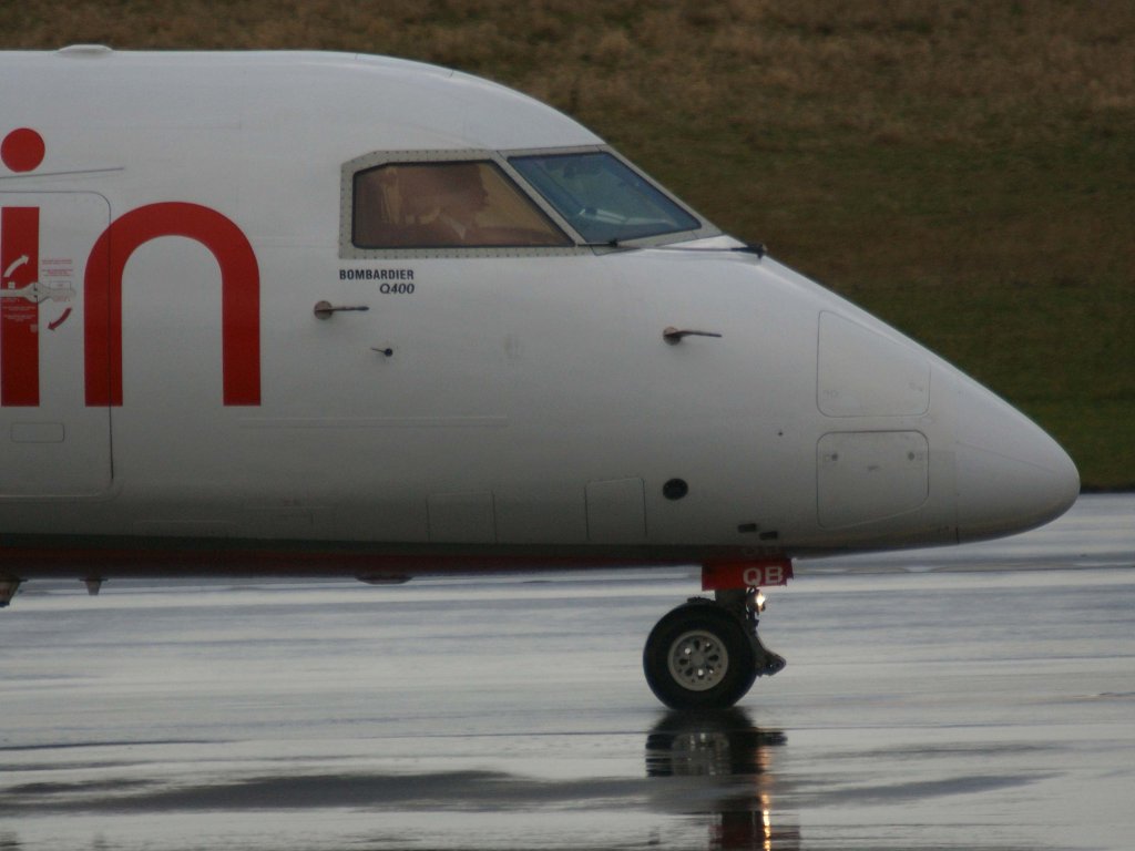 Air Baltic De Havilland Canada DHC-8-402Q YL-BAQ kurz vor dem Start in Berlin-Tegel an einem sehr trüben Morgen des 29.10.2011