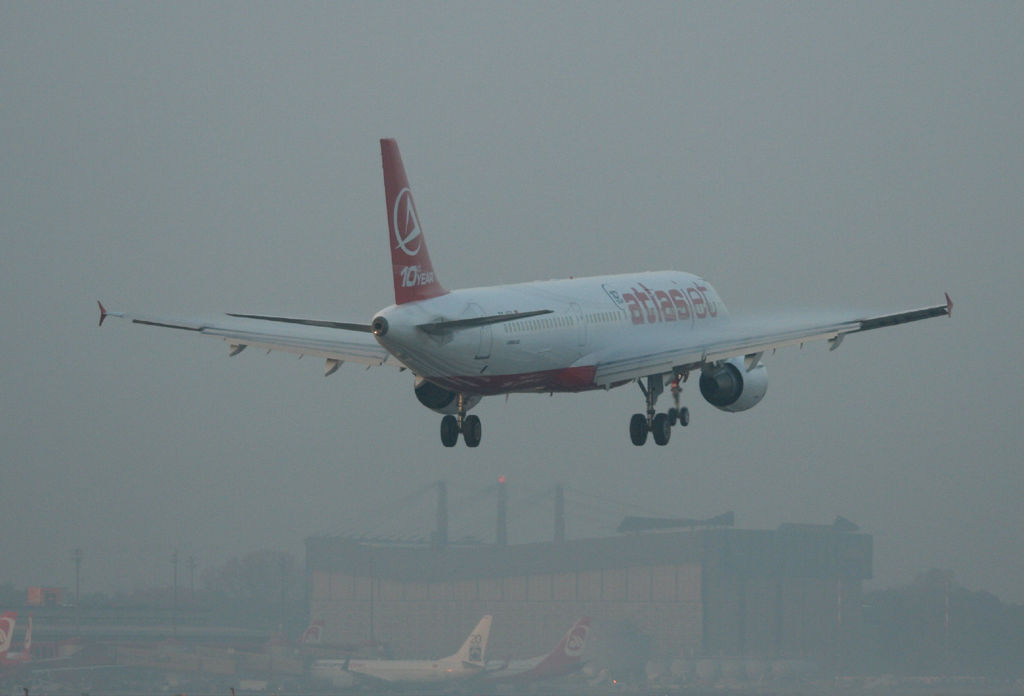 Atlasjet A 321-211 TC-ATB bei der Landung in Berlin-Tegel an einem sehr trüben Morgen des 29.10.2011