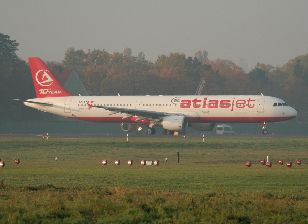Atlasjet A 321-211 TC-ATB kurz vor dem Start in Berlin-Tegel an einem sehr trüben Morgen des 29.10.2011