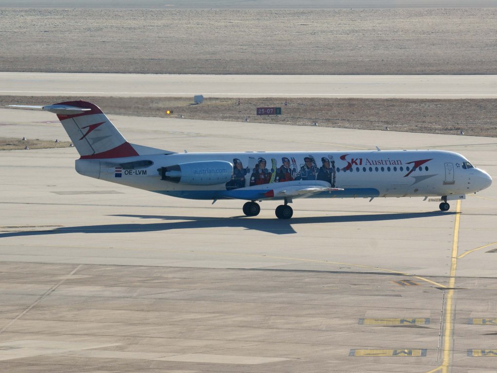 Austrian (Tyrolean Airways), OE-LVM "Krasnador", Fokker, 100 (Sticker Austrian Ski-Team), 16.01.2012, STR-EDDS, Stuttgart, Germany