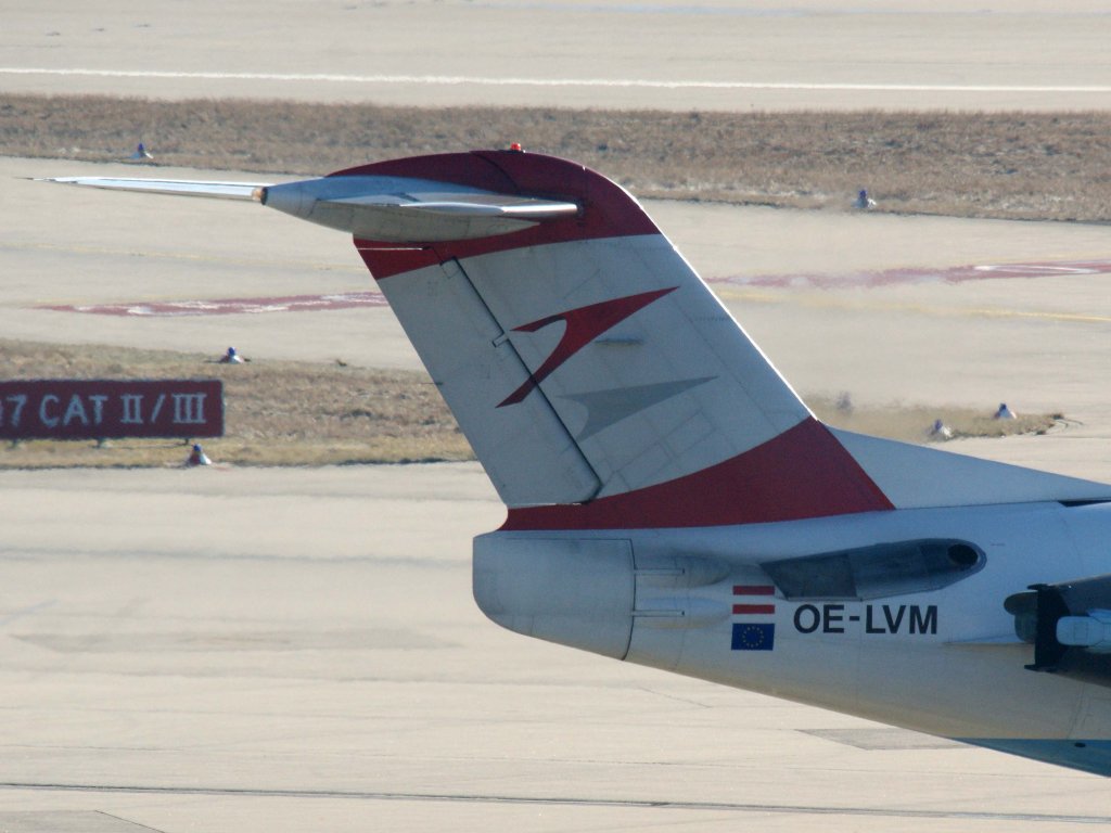 Austrian (Tyrolean Airways), OE-LVM "Krasnador", Fokker, 100 (Seitenleitwerk/Tail), 16.01.2012, STR-EDDS, Stuttgart, Germany