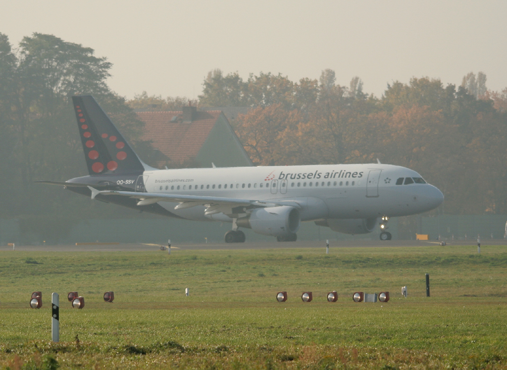 Brussels Airlines A 319-111 OO-SSV kurz vor dem Start in Berlin-Tegel am 29.10.2011