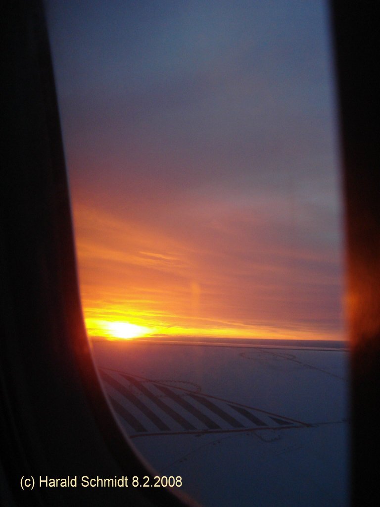 Flug in den Sonnenuntergang am 8.2.2008: von Kopenhagen nach Hamburg beim Start in Kopenhagen