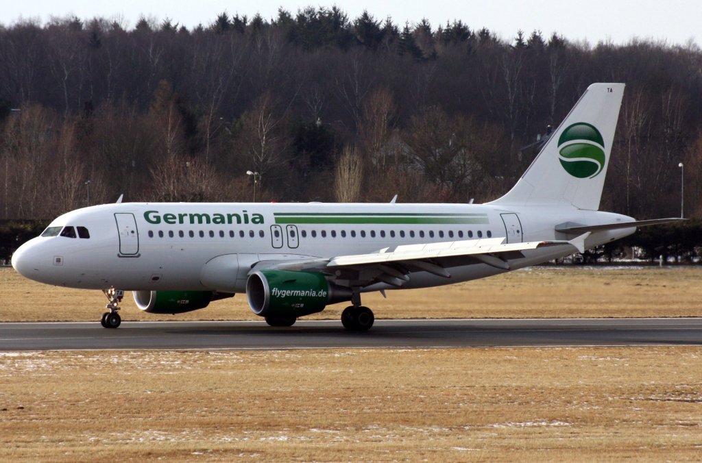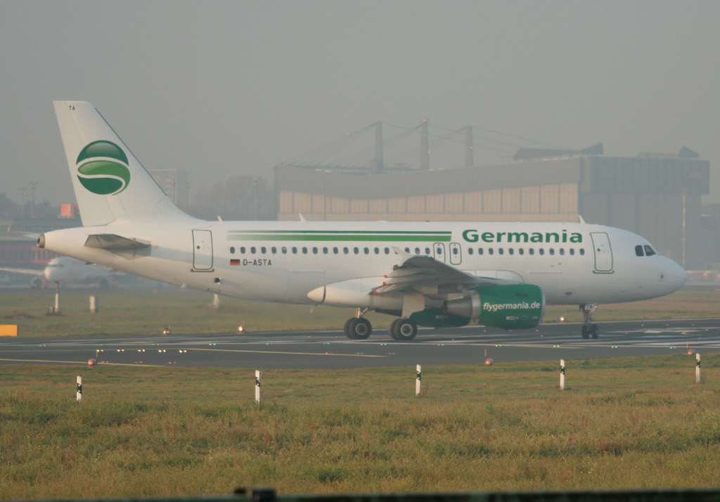 Germania A 319-112 D-ASTA kurz vor dem Start in Berlin-Tegel an einem sehr trüben Morgen des 29.10.2011