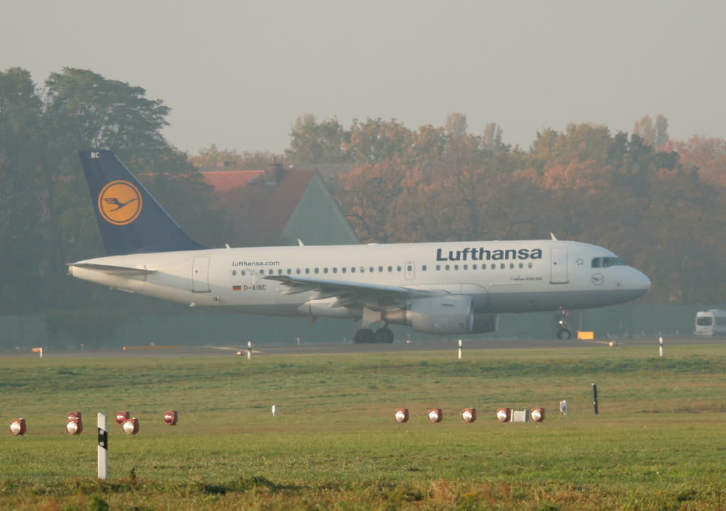 Lufthansa A 319-112 D-AIBC kurz vor dem Start in Berlin-Tegel an einem sehr trüben Morgen des 29.10.2011