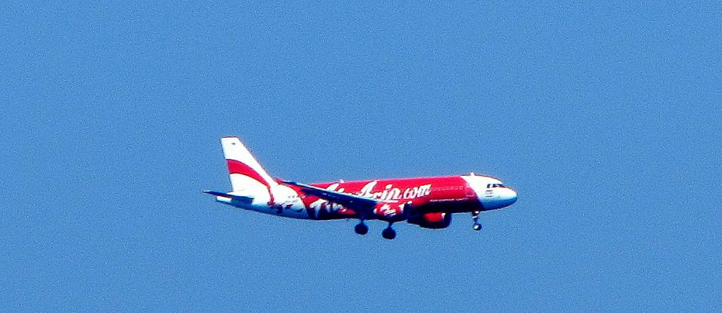 Air Asia beim Landeanflug auf Phuket am 30.12.2011.