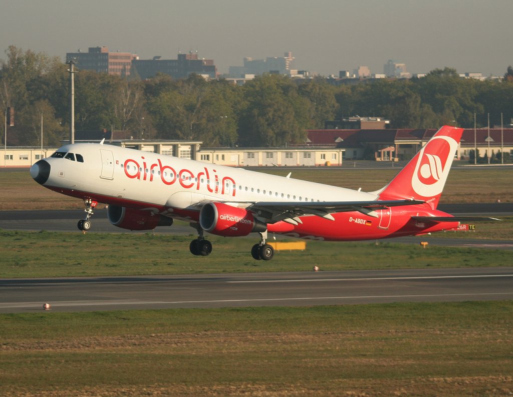 Air Berlin A 320-214 D-ABDX beim Start in Berlin-Tegel am 15.10.2011