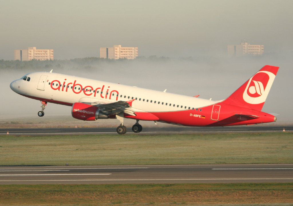 Air Berlin A 320-214 D-ABFE beim Start in Berlin-Tegel am 15.10.2011
