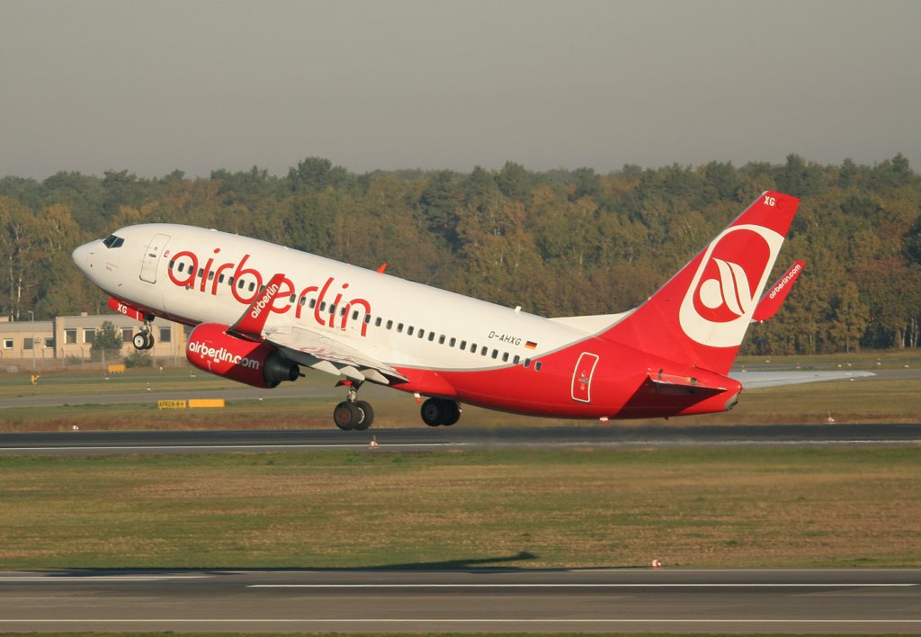 Air Berlin B 737-7K5 D-AHXG beim Start in Berlin-Tegel am 15.10.2011