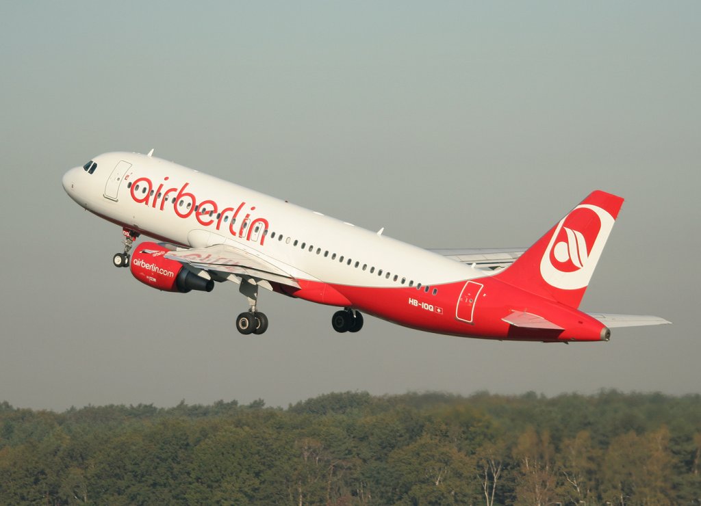 Air Berlin(Belair) A 320-214 HB-IOQ beim Start in Berlin-Tegel am 15.10.2011