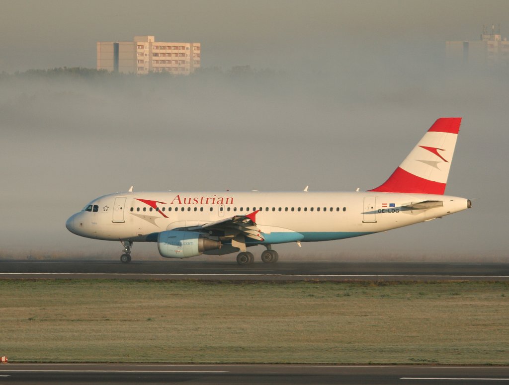 Austrian A 319-112 OE-LDG nach der Landung in Berlin-Tegel am 15.10.2011