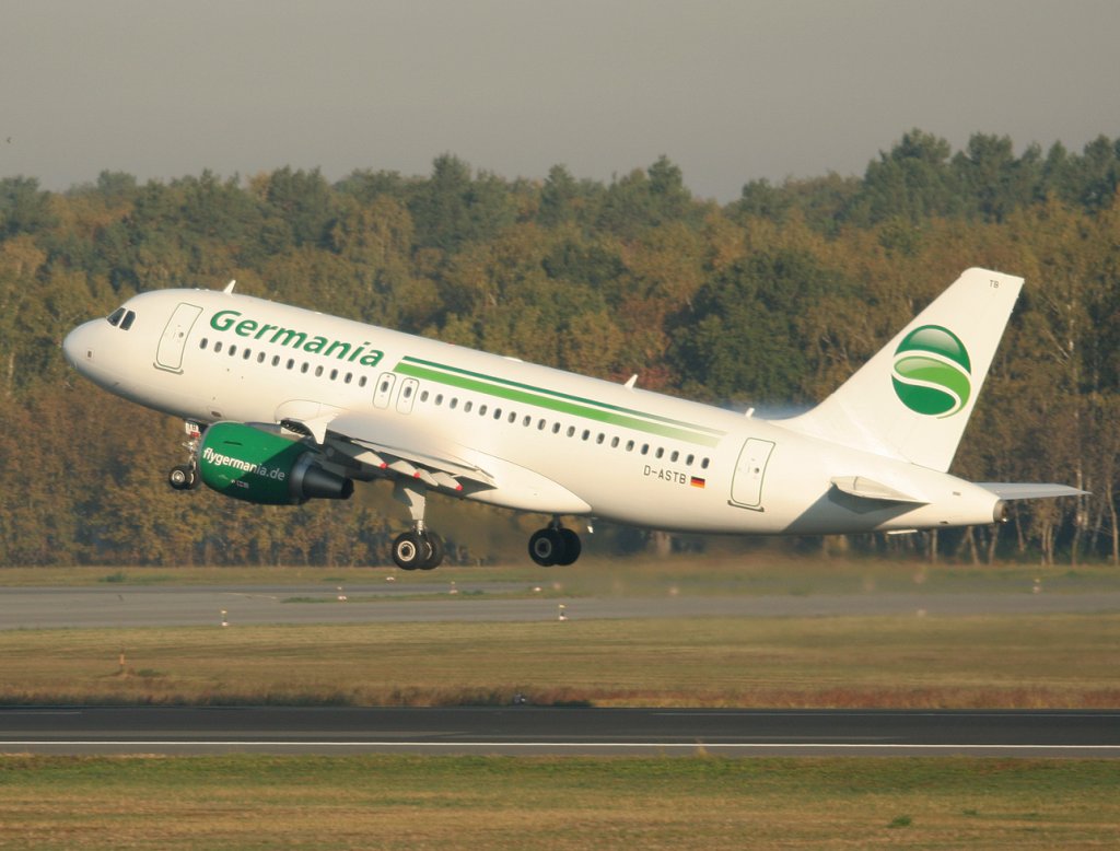 Germania A 319-112 D-ASTB beim Start in Berlin-Tegel am 15.10.2011