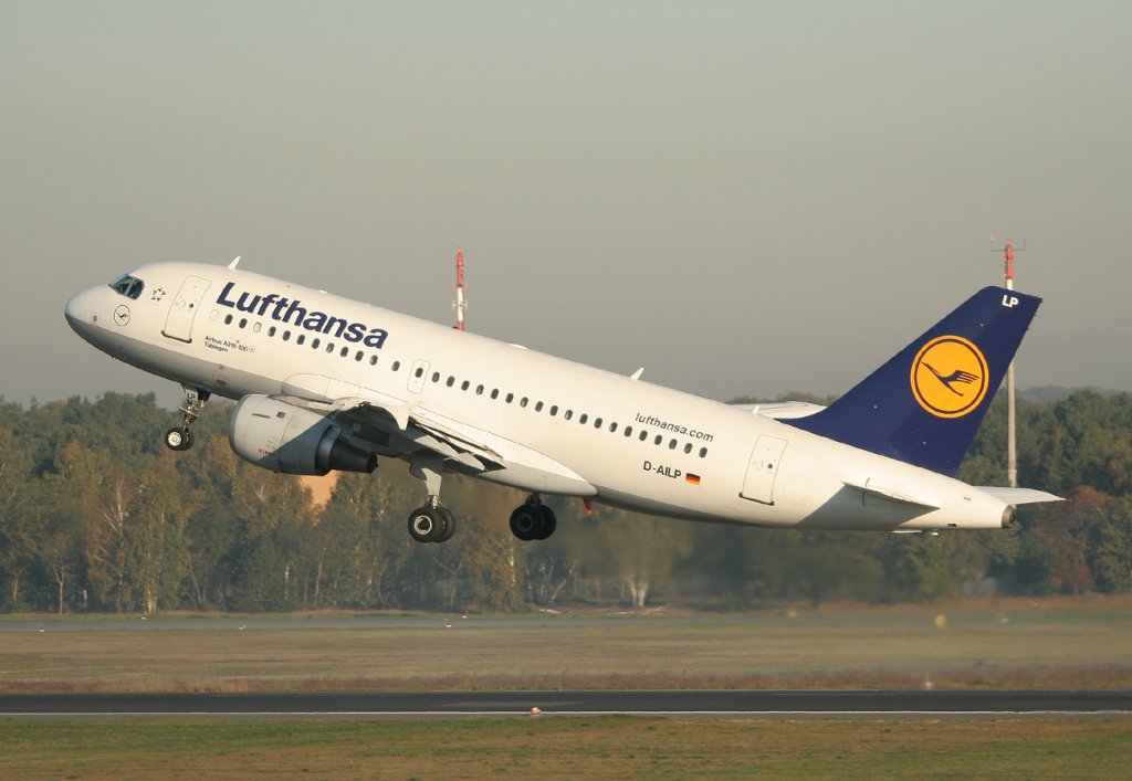 Lufthansa A 319-114 D-AILP "Tübingen" beim Start in Berlin-Tegel am 15.10.2011