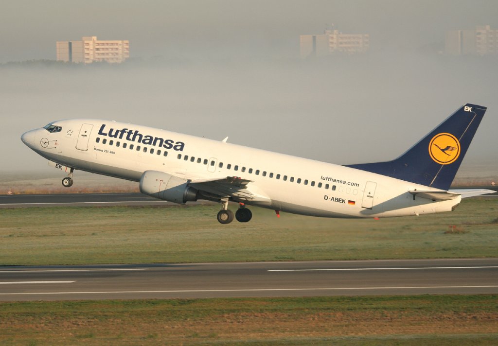 Lufthansa B 737-330 D-ABEK beim Start in Berlin-Tegel am 15.10.2011