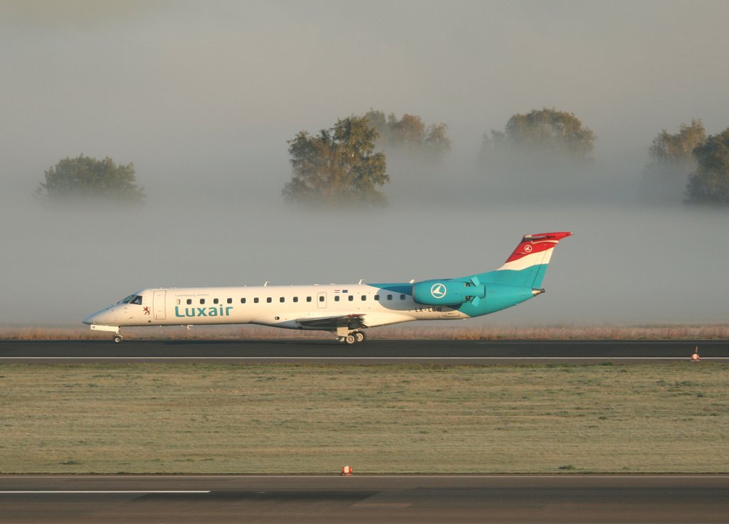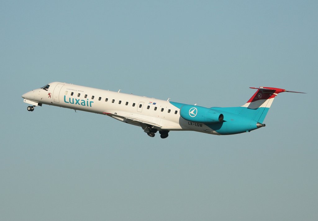 Luxair Embraer ERJ-145LU LX-LGW beim Start in Berlin-Tegel am 15.10.2011
