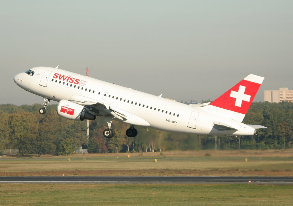 Swiss A 319-112 HB-IPY nach der Landung in Berlin-Tegel am 15.10.2011