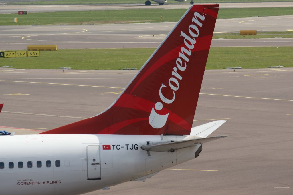 Corendon Airlines, TC-TJG "We love Alanya - Sticker", Boeing, 737-800 wl (Seitenleitwerk/Tail), 25.05.2012, AMS-EHAM, Amsterdam (Schiphol),Niederlande