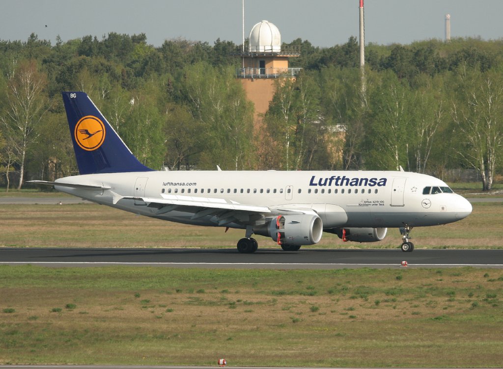 Lufthansa A 319-112 D-AIBG "Kirchheim unter Teck" nach der Landung in Berlin-Tegel am 28.04.2012