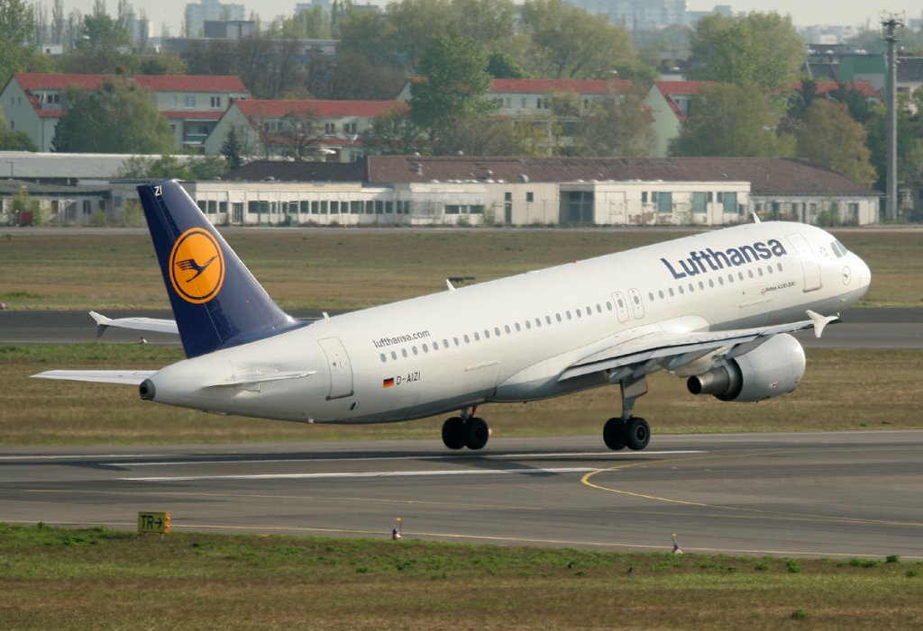 Lufthansa A 320-214 D-AIZI beim Start in Berlin-Tegel am 28.04.2012