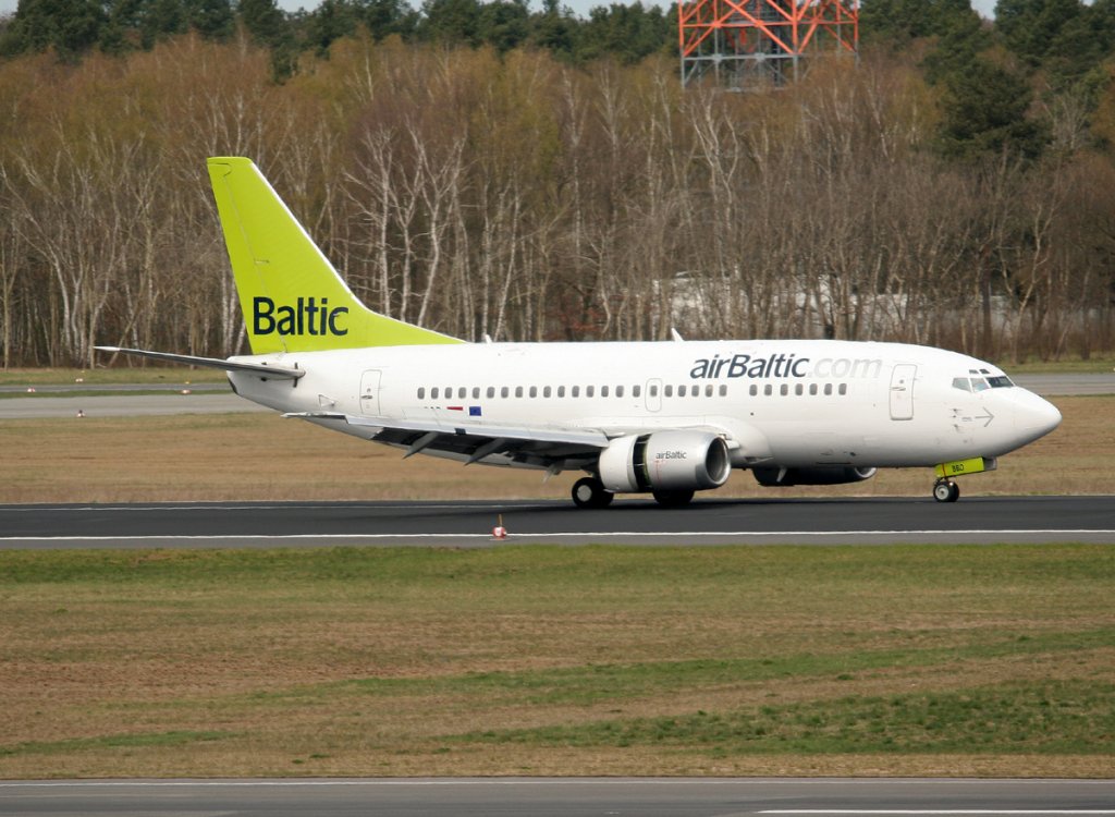 Air Baltic B 737-53S YL-BBD nach der Landung in Berlin-Tegel am 15.04.2012