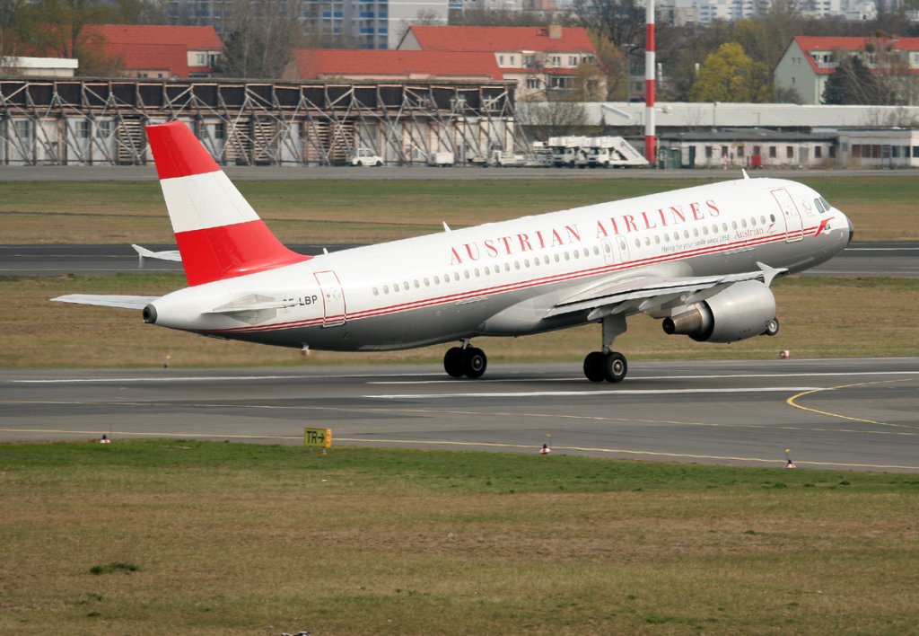 Austrian Retro A 320-214 OE-LBP beim Start in Berlin-Tegel am 15.04.2012
