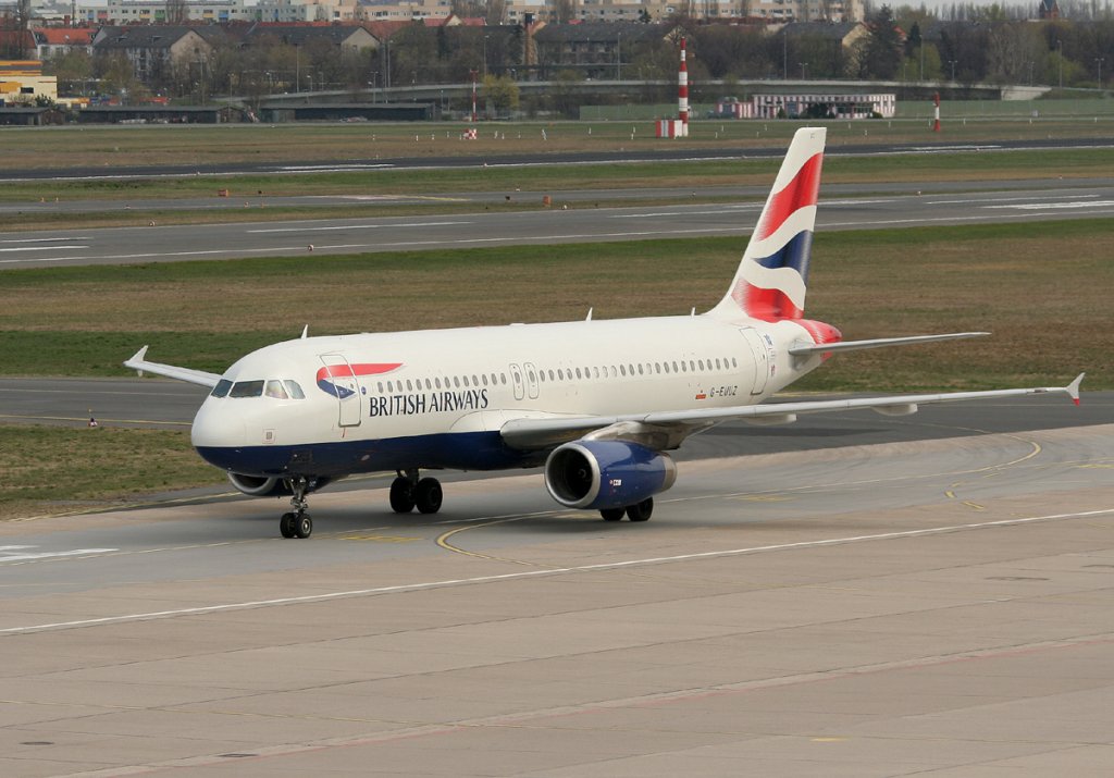 British Airways A 320-232 G-EUUZ bei der Ankunft in Berlin-Tegel am 15.04.2012