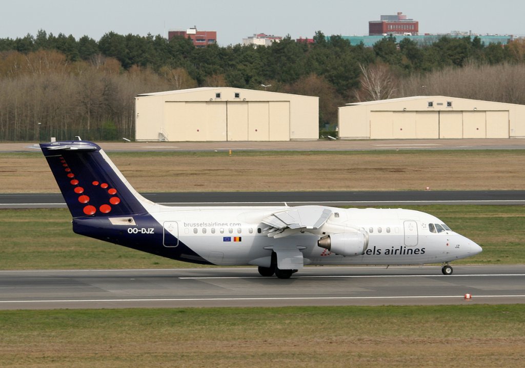 Brussels Airlines Avro Regjet RJ85 OO-DJZ nach der Landung in Berlin-Tegel am 15.04.2012