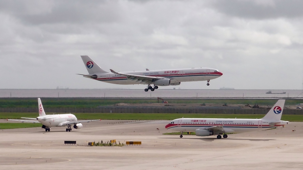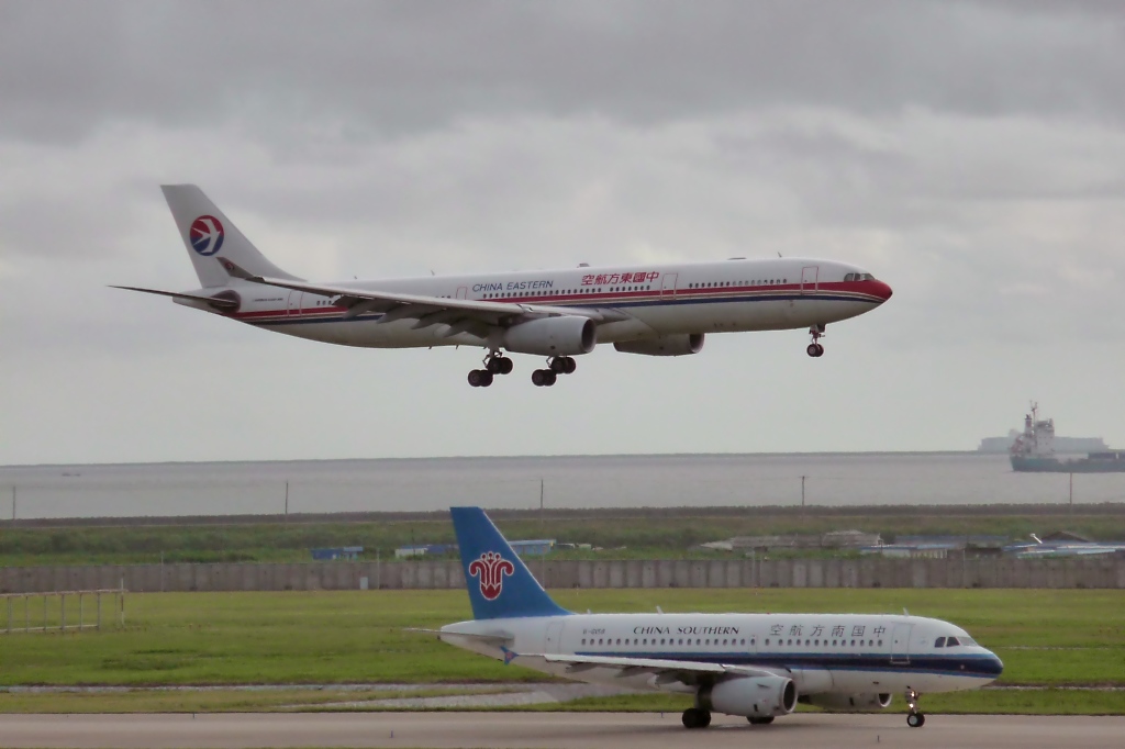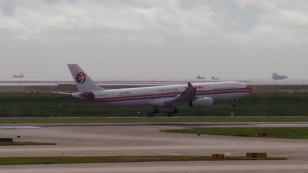 China Eastern B-6096, Airbus A330-343X, kurz vorm Touch-down in Pudong (6.8.10)