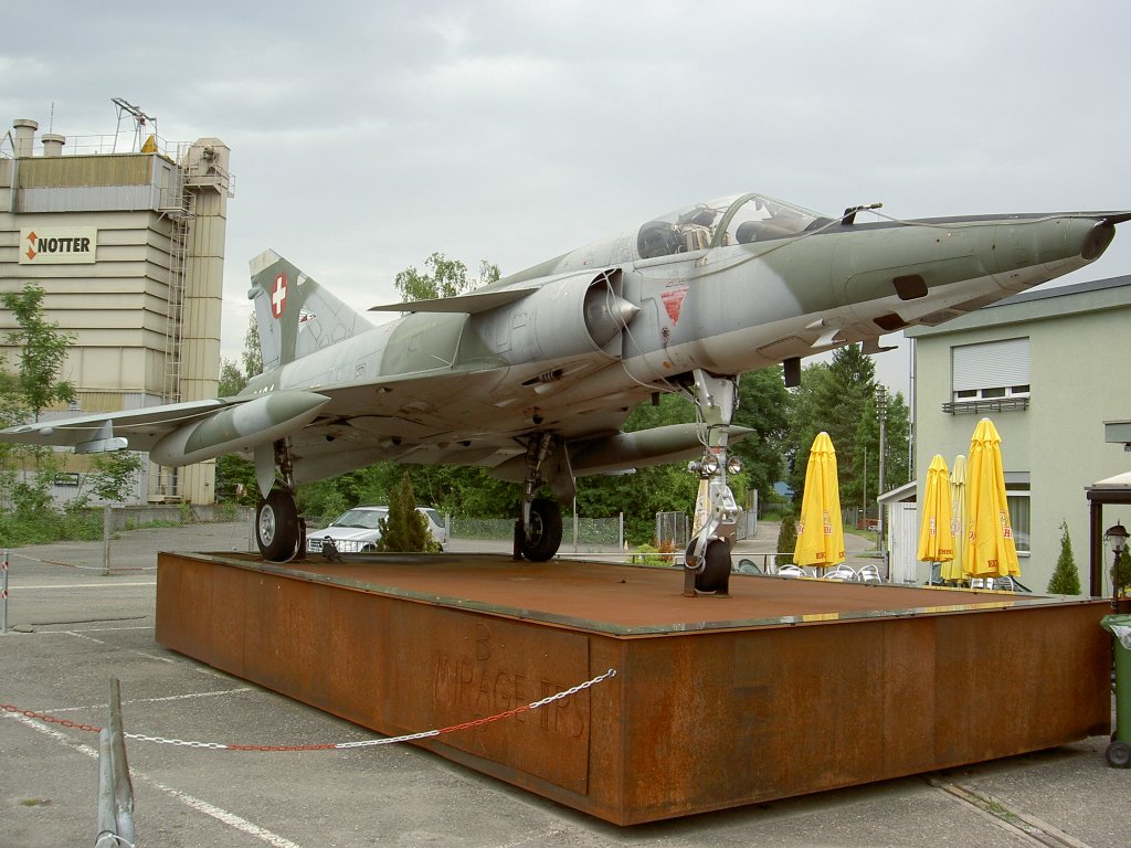 Dassault Mirage IIIS, ausgemusterte Maschine der Schweizer Luftwaffe an der Kartbahn in Wohlen AG (07.06.2012)
