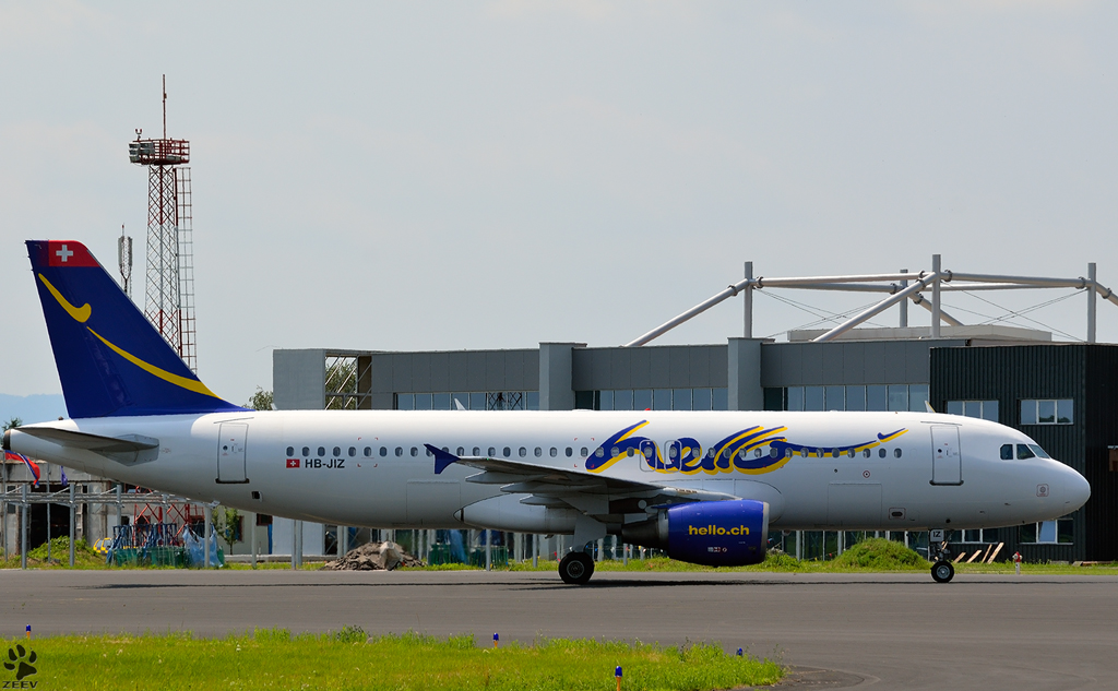 HELLO A320-214, HB-JIZ auf Maribor Flughafen MBX. /7.6.2012