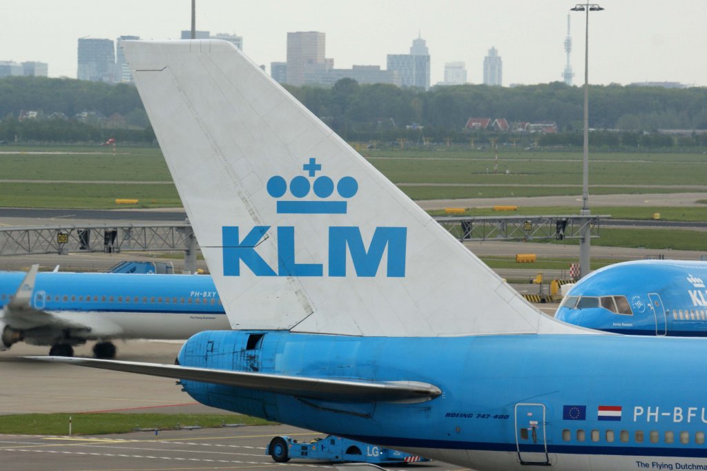 KLM Royal Dutch Airlines, PH-BFU "Beijing - City of Beijing", Boeing, 747-400 M (Seitenleitwerk/Tail), 25.05.2012, AMS-EHAM, Amsterdam (Schiphol), Niederlande