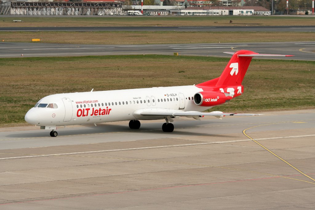 OLT Express(Jetair) Fokker 100 D-AOLH auf dem Weg zum Start in Berlin-Tegel am 15.04.2012