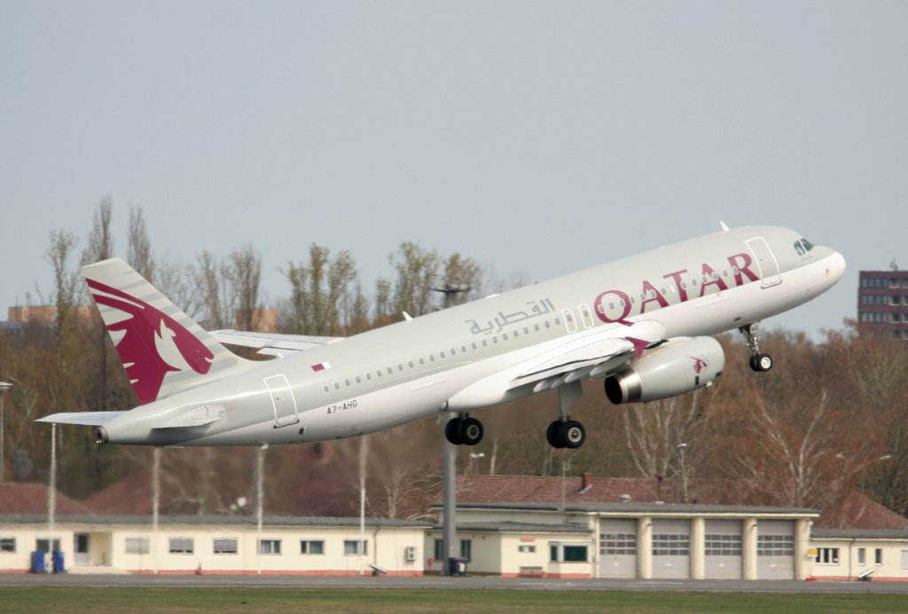 Qatar Airways A 320-232 A7-AHG beim Start in Berlin-Tegel am 15.04.2012
