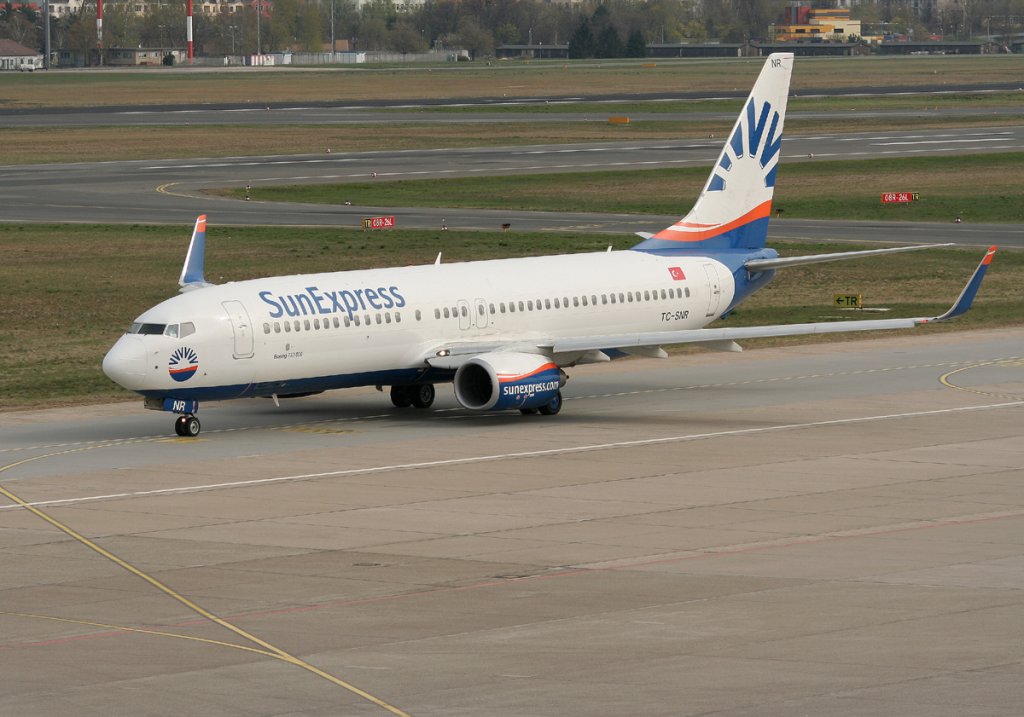 SunExpress B 737-8HC TC-SNR auf dem Weg zum Start in Berlin-Tegel am 15.04.2012